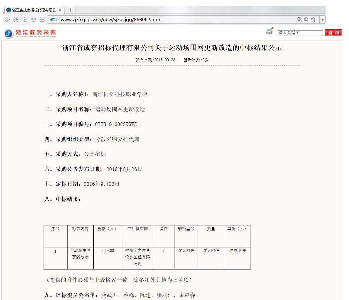 上一篇:2016年8月11日中標浙江體育職業技術學院蕭山校區網球場面層改造工程